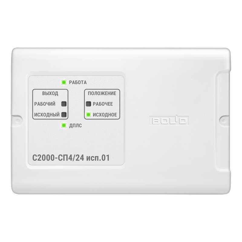 «С2000-СП4/24 исп.01» для рабочего напряжения приводов от 12 до 24 В (переменного или постоянного тока) с встроенным изолятором короткого замыкания ДПЛС. Блок сигнально-пусковой адресный предназначен для управления и контроля клапанов противодымной вентиляции, огнезадерживающих клапанов общеобменной вентиляции, дренчерных клапанов, и иных исполнительных устройств.