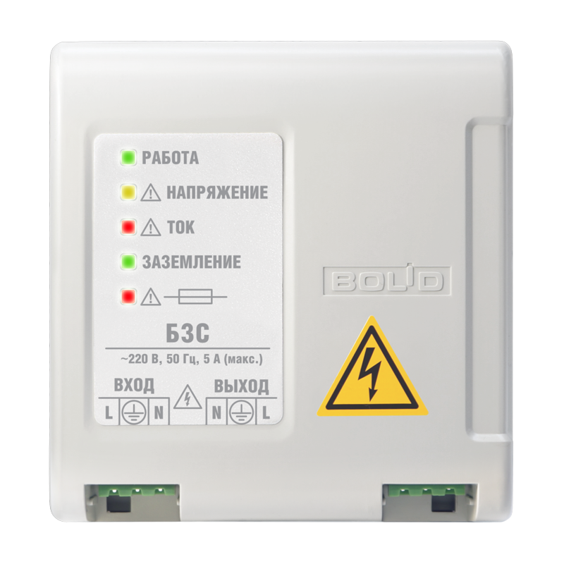 Блок защитный сетевой БЗС исп.01 применяется в электрических сетях (~230 В, 50 Гц) для защиты оборудования охранно-пожарной сигнализации с потребляемой мощностью до 1,2 кВА (ток до 5 А) от длительных перенапряжений и высоковольтных импульсных помех. 5 раздельных индикаторов состояний. Размещение блока на DIN-рейку.