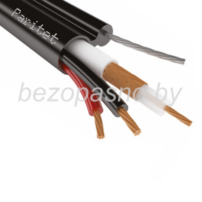 Комбинированный кабель КВК-Пт-3ф 2х0,50 для систем аналогового видеонаблюдения имеет однопроволочный радиочастотный элемент РК 75-3-32, экран (оплётка медными проволоками плотностью не менее 90%) и две жилы питания сечением 0,5 мм.кв. Предназначен для внешней стационарной подвесной прокладки.