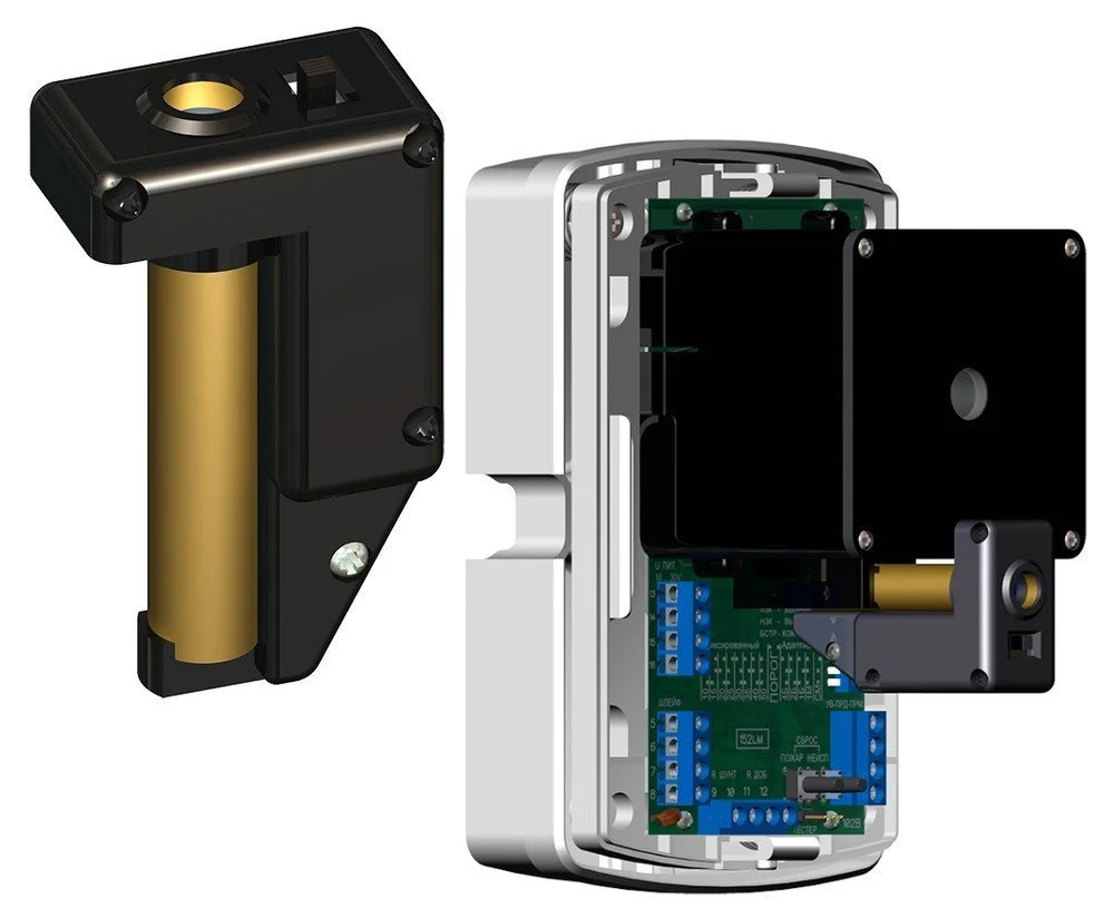 Лазерное юстировочное устройство (Лазерный указатель 152) относится к сервисному оборудованию для извещателей серии 152. Предназначено устройство для облегчения и ускорения работ по юстировке извещателей. В конструкции всех блоков извещателей серии 152 на оптической системе имеются специальные защелки для установки Лазерного указателя 152. Высокая точность совмещения луча Лазерного указателя 152 и максимума диаграммы направленности оптической системы блока достигается не только точностью изготовления деталей извещателя, но и выбором специально отцентрированных лазерных модулей с многолинзовой фокусировкой. Питание Лазерного указателя 152 осуществляется от трех элементов типа LR44 (G13).