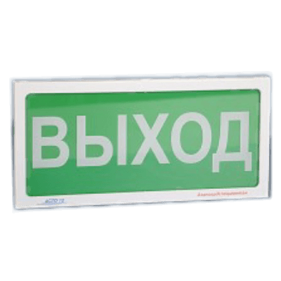 Световой оповещатель пожарный "АСТО12/1" является частью системы оповещения и служит для звукового и визуального обозначения опасности, для показа путей эвакуации. Надписи выполняются под заказ.