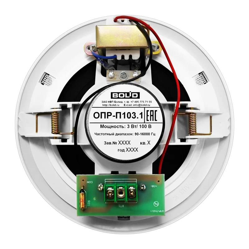 Оповещатель пожарный речевой потолочный ОПР-П103.1 предназначен для передачи речевого оповещения или специальных сигналов в системах оповещения и управления эвакуацией (СОУЭ), а также передачи речевой информации в системах звуковой трансляции с высокоомным выходом (100 В).