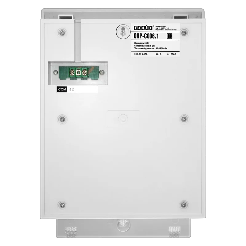 Оповещатель пожарный речевой настенный ОПР-С006.1 предназначен для передачи речевого оповещения или специальных сигналов в системах оповещения и управления эвакуацией (СОУЭ), а также передачи речевой информации в системах звуковой трансляции с низкоомным выходом. Мощность оповещателя 6 Вт.