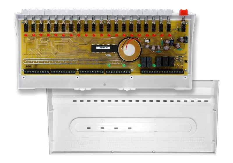 Прибор приемно-контрольный охранно-пожарный Сигнал-20 служит для использования в автономном режиме или в составе ИСО «Орион» для контроля различных типов охранных и пожарных неадресных извещателей, контакторов и сигнализаторов с нормально-замкнутыми или нормально-разомкнутыми контактами и релейного управления внешними исполнительными устройствами. Для работы в автономном режиме имеет клавишное управление.
