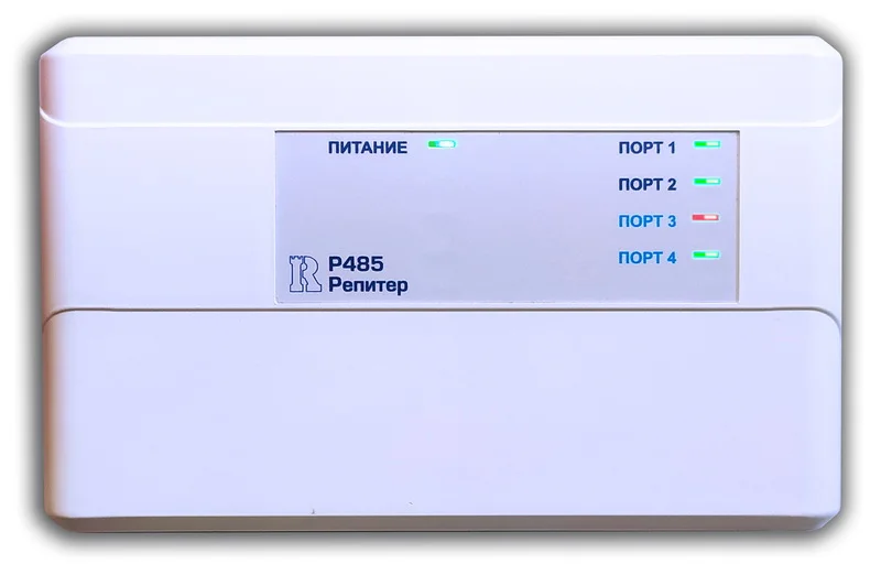 Репитер Р485 оборудован 4 портами для подключения линий связи стандарта RS485.