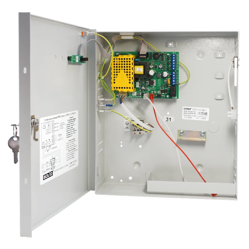 Напряжение: 12В; 2А (мах 3А); емкость АБ 7Ач; световая индикация; звуковая сигнализация; датчик вскрытия корпуса; защита: от перенапряжения, от КЗ, от переполюсовки АБ.