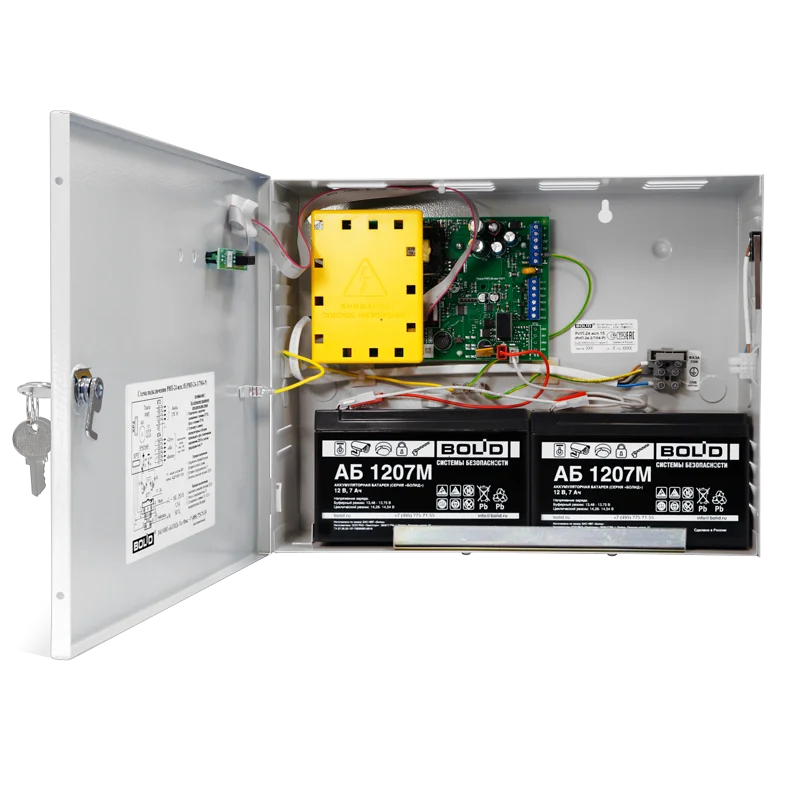 Резервированный источник питания РИП-24 исп.15 (РИП-24-3/7М4-Р) предназначен для питания технических средств пожарной автоматики и других слаботочных систем. Напряжение: 24В; 3А (мах 4А); емкость АБ 2*7 Ач; световая индикация; звуковая сигнализация; датчик вскрытия корпуса; защита: от перенапряжения, от КЗ, от переполюсовки АБ.