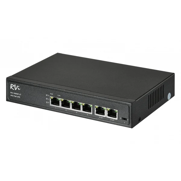 Настольный коммутатор RVi c поддержкой PoE обеспечивает простое подключение сетевых камер видеонаблюдения к вашей системе видеонаблюдения.
