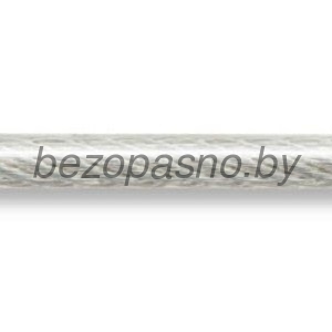 Изготовлен из углеродистой стали, поверхность оцинкована. Оплетка прозрачная, изготовлена из ПВХ. D=3мм. Покрытие троса устойчиво к воздействию агрессивных сред и солнечному излучению. Рабочий диапазон температур от -40 до +50 С