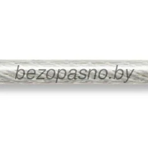 Изготовлен из углеродистой стали, поверхность оцинкована. Оплетка прозрачная, изготовлена из ПВХ. D=3мм. Покрытие троса устойчиво к воздействию агрессивных сред и солнечному излучению. Рабочий диапазон температур от -40 до +50 С