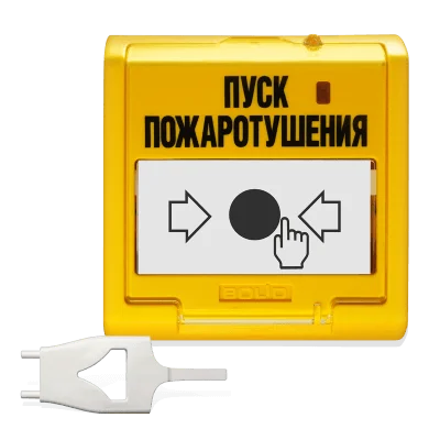 Оснащено пломбируемым защитным стеклом, обеспечивающим соответствие классу В по ГОСТ Р 53325-2012 и предохраняющим от срабатываний при случайных нажатиях.