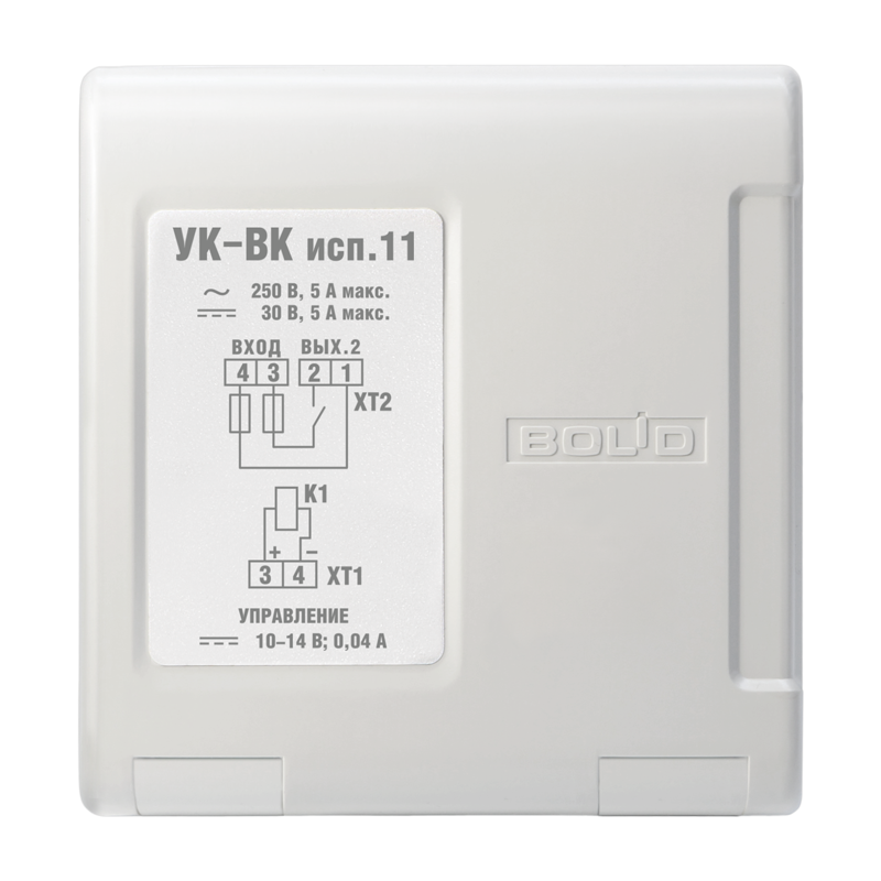 Устройство коммутационное УК-ВК исп.11 предназначено для использования в системах контроля доступа и охранной сигнализации для коммутации исполнительных устройств, в системах пожарной сигнализации для передачи стартового импульса на приборы пожарные управления.