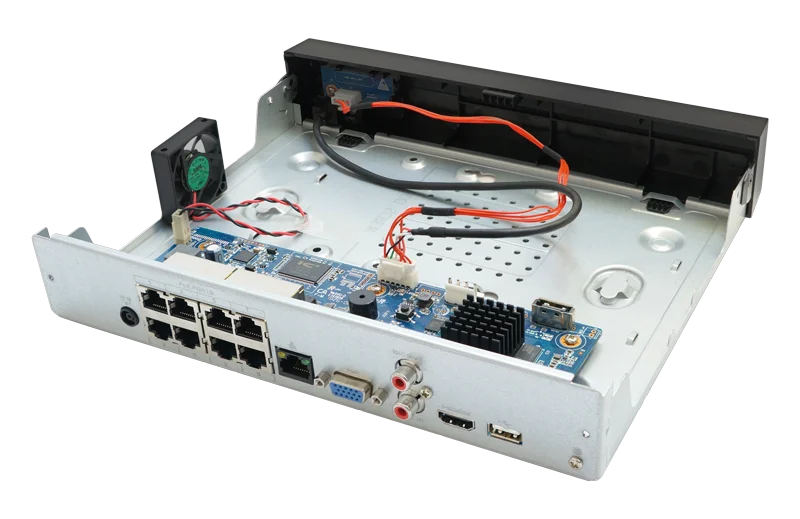 Встроенный адаптер PoE для питания 8 видеокамер по кабелю сети Ethernet.