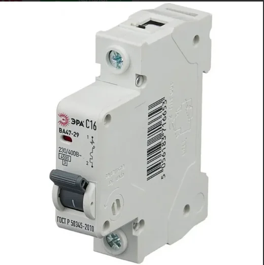 Автоматический выключатель ЭРА 1P C 16А 4.5кА ВА47-29 SIMPLE-mod-03 Б0039220 - это электрическое устройство, предназначенное для защиты электрических цепей от перегрузки и короткого замыкания.