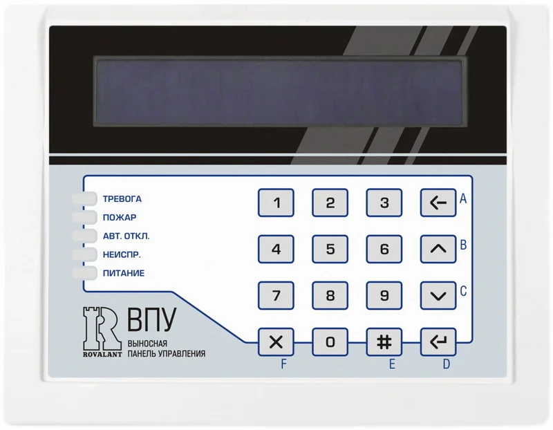 С помощью клавиатуры ВПУ-А-16 осуществляется постановка под охрану, снятие с охраны зон путем выбора номера зоны и предъявления ключа пользователя на считыватель электронных ключей, подключенный к ВПУ-А-16, либо ввода ввода PIN-кода, сброс тревог, программирование конфигурации приборов и звуковое оповещение встроенным зуммером о наличии тревог и системных неисправностей.