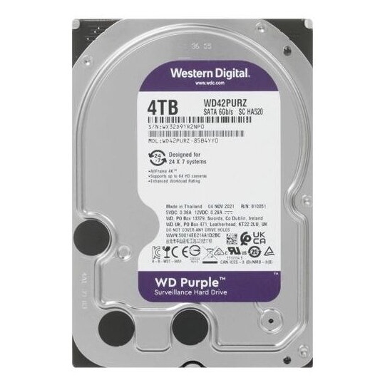 Жесткий диск WD Purple используется для систем виоденаблюдения. Служат для круглосуточной эксплуатации в системах безопасности высокой четкости. WD Purple поддерживают аналитические системы с технологией глубокого обучения, что позволяет работать с сетевыми видеорегистраторами, обладающими возможностями искусственного интеллекта.