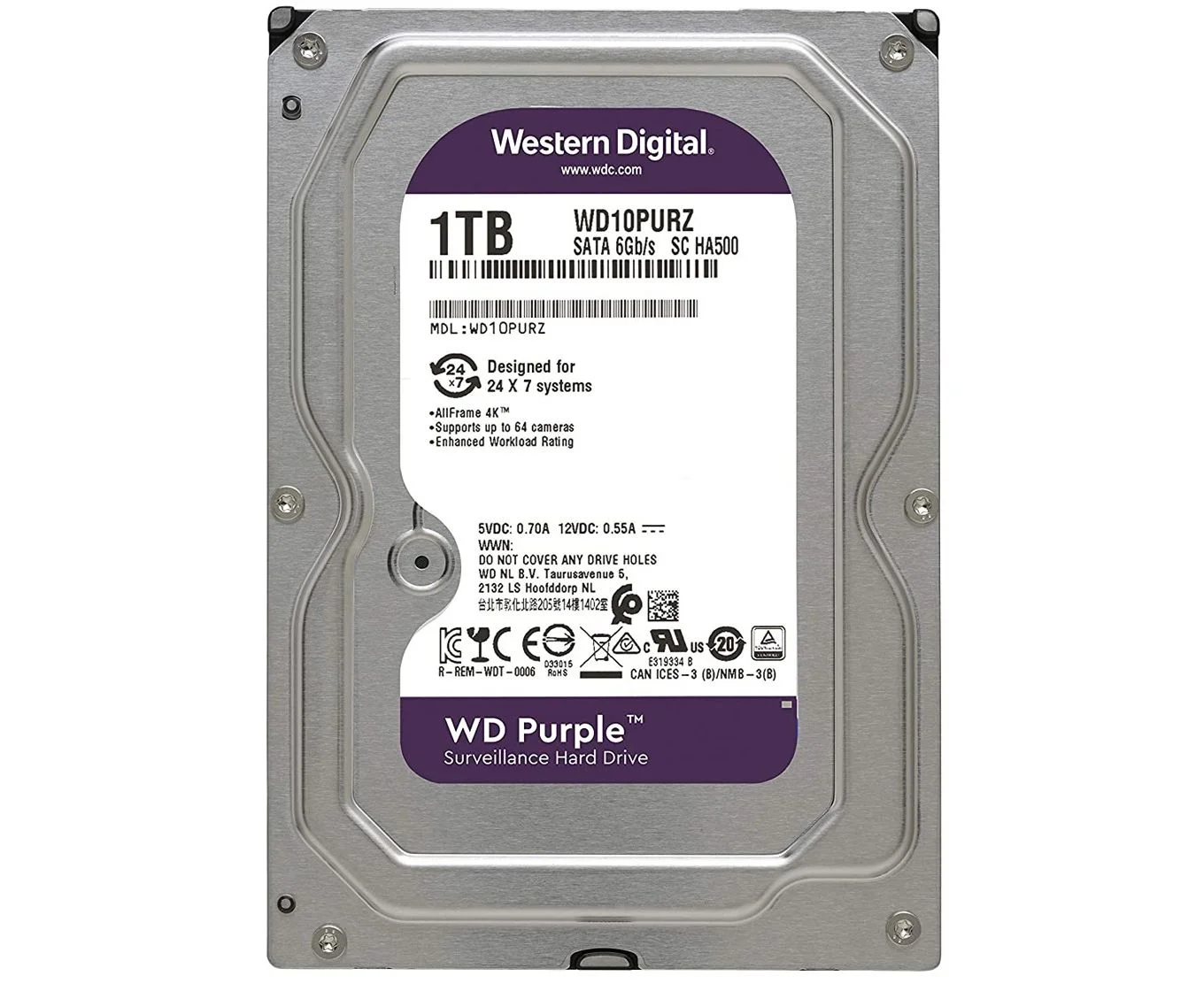Модель WD10PURZ принадлежит к специализированной серии WD Purple, предназначенной для систем видеонаблюдения и рассчитанной на рабочую нагрузку до 180ТБ в год, что превышает в несколько раз показатели жестких дисков для настольных компьютеров. Количество камер на накопитель – до 64, в системе может быть задействовано до 8 дисков. Объем HDD составляет 1 ТБ, форм-фактор – 3.5 дюйма, интерфейс – SATA 6 Гб/с.