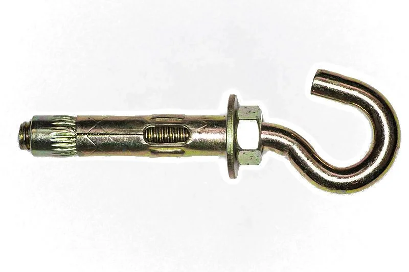 Анкерный болт с крюком предназначен для крепления тяжеловесных конструкций к бетону, строительному камню и кирпичу. Может применяться для крепления к тонким бетонным перегородкам.