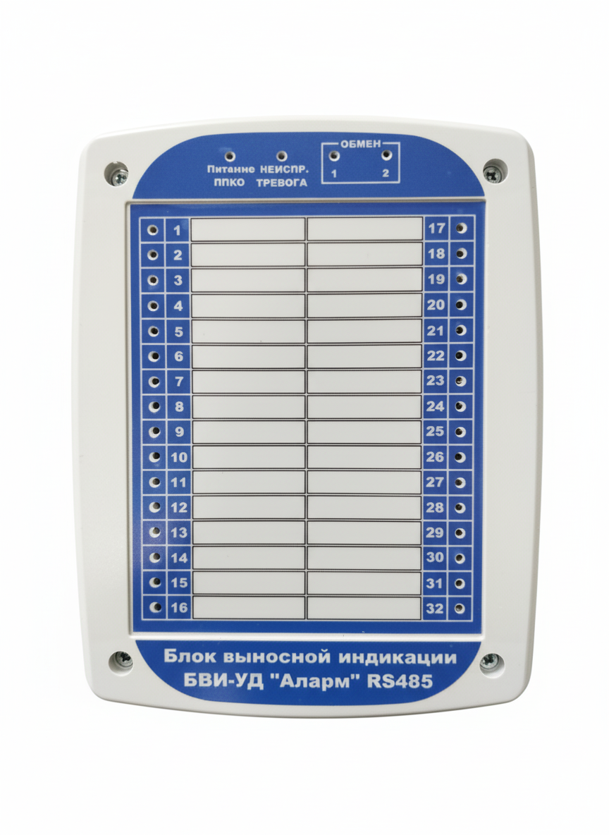 Блок выносной индикации БВИ-УД «Аларм» RS485 (БВИ-УД RS485) предназначен для удаленной индикации контроля: