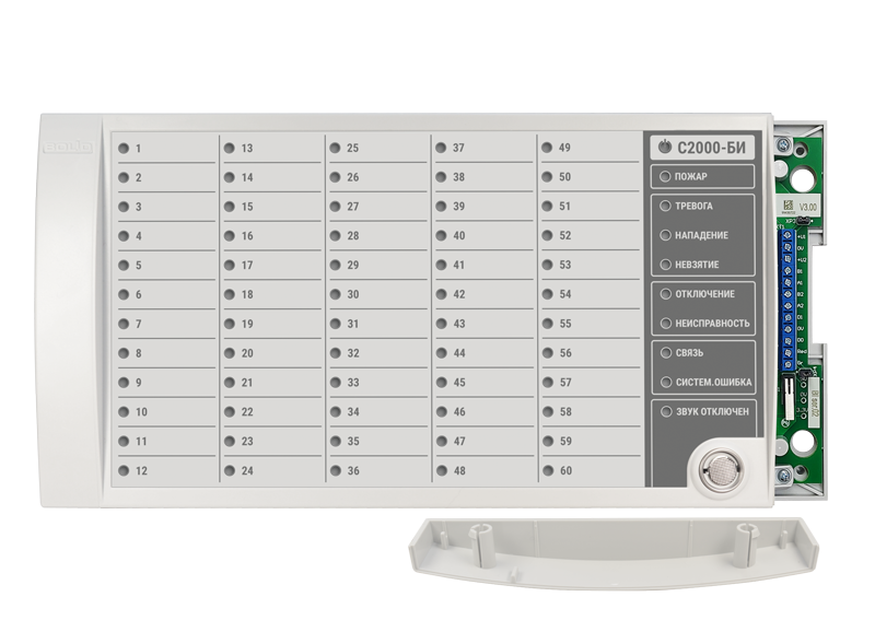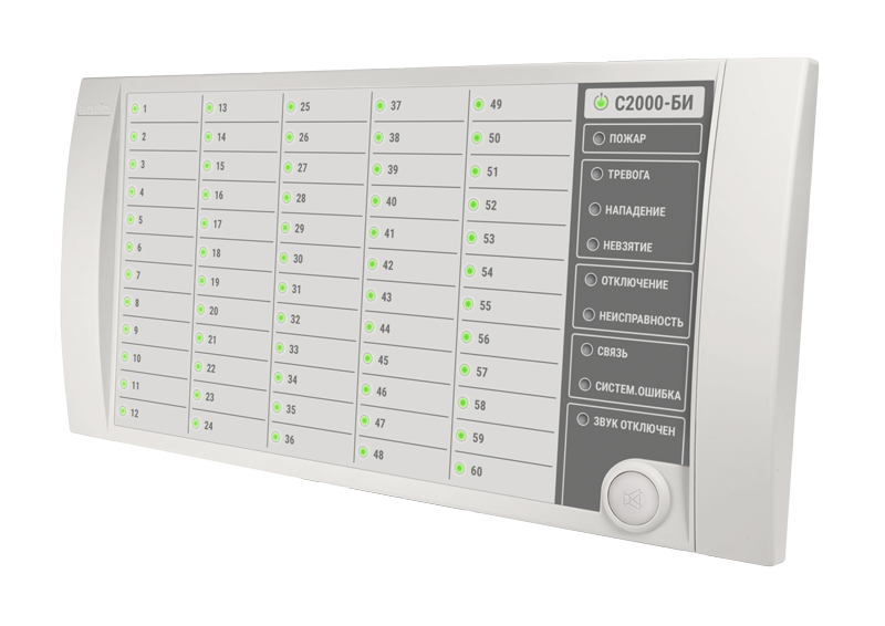 Блок индикации «С2000-БИ» предназначен для работы в составе ИСО «Орион» совместно с пультом контроля и управления «С2000» (С2000М) и отображения с помощью встроенных индикаторов и звуковой сигнализации сообщений о событиях в 60 разделах системы.