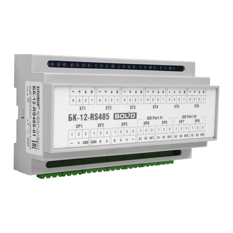 Блок коммутации БК-12-RS485-01 предназначен для установки в монтажные устройства (шкафы, боксы и т.п.) с целью организации резервированной линии связи RS-485 между компонентами блочно-модульных приборов приемно-контрольных и управления пожарных (ППКП и ППКУП) с учетом требований СП 484.1311500.2020.