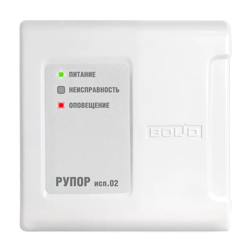 Блок речевого оповещения "Рупор исп. 02" предназначен для трансляции предварительно записанной речевой информации о действиях, направленных на обеспечение безопасности при возникновении пожара и других чрезвычайных ситуаций. Блок речевого оповещения "Рупор исп.02" предназначен для работы в составе ИСО "Орион".
