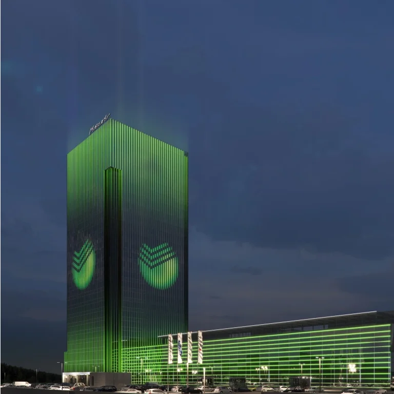 Новый бизнес-центр класса «А» «Футурис» расположился в районе Уручья и кардинально отличается от других центров своим самым современным подходом к внутренним интерьерам и внешней иллюминации. В вечернее время невозможно отвести глаза от сверкающего фасада здания.