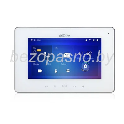 Монитор IP видеодомофона цветной, 7" TFT сенсорный емкостной дисплей 1024x600, подключение до 20 вызывных панелей и просмотр до 8 камер, MicroSD до 32ГБ, 12V DC или PoE (802.3af), максимальная потребляемая мощность 7Вт, Ethernet 100Мбит/с, Wi-Fi (опционально), накладной тип монтажа, 215x140x21мм, -10…+55° C, цвет корпуса - белый.