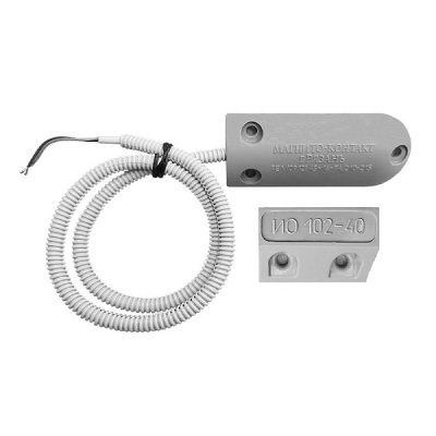 ИО 102-40 А2П (2) - извещатель охранный точечный магнитоконтактный с двойным выводом в пластиковом гофрорукаве. ИО предназначен для блокировки гаражных ворот, ангаров, железнодорожных контейнеров, телефонных шкафов и других конструктивных магнитопроводящих (металлических) и магнитонепроводящих (алюминиевых, деревянных и т.д.) элементов зданий и сооружений на открывание и смещение с выдачей в шлейф приёмно-контрольного прибора извещения о тревоге путем размыкания или замыкания контактов геркона.