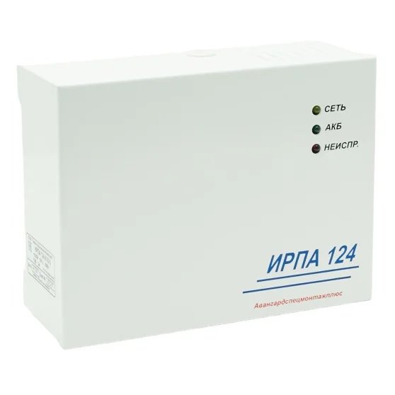 Источник резервного питания аккумуляторный ИРПА 124.01/0-3 (в дальнейшем ИРПА) предназначен для обеспечения бесперебойным электропитанием систем охранной, пожарной сигнализации, видеонаблюдения, контроля доступа, средств связи и автоматики от однофазной сети переменного тока. ИРПА предназначен для подключения к системам и устройствам, использующим номинальное рабочее напряжение 12В постоянного тока и имеющим вход для подключения источников бесперебойного электропитания. В качестве элементов резервного питания в ИРПА используются свинцовые герметичные необслуживаемые аккумуляторы, изготовленные по технологии "dryfit" или AGM. ИРПА обеспечивает буферный режим заряда аккумулятора и его поддержание в заряженном состоянии (standby use) с контролем наличия, отключением от нагрузки при разряде, защитой от переполюсовки клемм или их замыкания, глубокого разряда, с автоматическим возвратом в исходное состояние после устранения причины неисправности. Для защиты от несанкционированного доступа имеет тампер вскрытия.