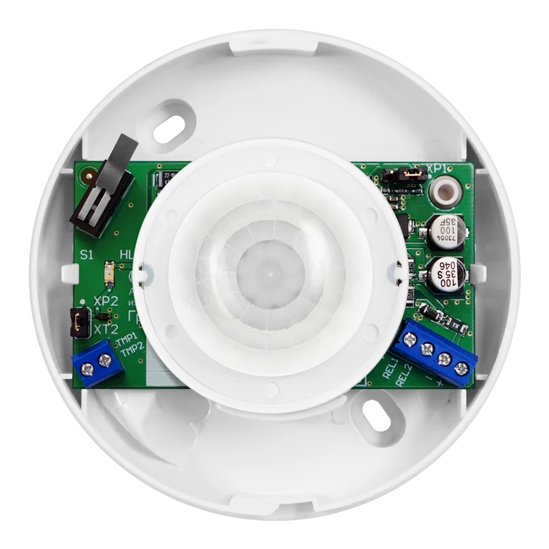 Извещатель относится к классу пассивных оптико-электронных инфракрасных извещателей. Принцип детектирования основан на регистрации изменений теплового излучения. Интеллектуальный алгоритм обрабатывает сигнал с пироэлектрического приёмника и принимает решение о наличии нарушителя в зоне контроля извещателя. Состояние извещателя отображается на светодиодном индикаторе и передаётся в ШС путём размыкания контактов реле извещателя.