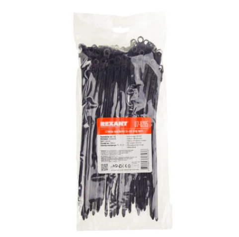 Хомут нейлоновый под винт 200x4,3мм черного цвета применяется для упорядочивания кабелей и проводов при прокладке, для соединения их в жгут/пучок, для маркировки и крепления к различным основаниям. Используется в быту для многих целей, например для ремонта вещей, подвязывания растений, сборки различных конструкций и т.д.