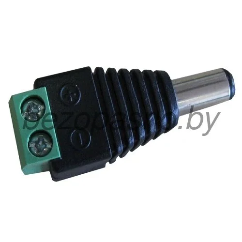 Коннектор (разъем) питания, штырьковый, тип "папа", 2-pin клеммная колодка под винт, предельный ток 2А при напряжении 42V, 2.1x5.5x10 мм.