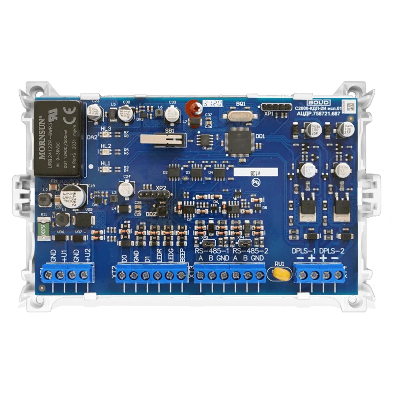 Контроллер двухпроводной линии связи с гальванической изоляцией С2000-КДЛ-2И исп.01 с двумя интерфейсами RS-485. Работа в составе систем: ИСО "Орион", АСКУЭ "Ресурс". Подключение до 127 адресных устройств (АУ).