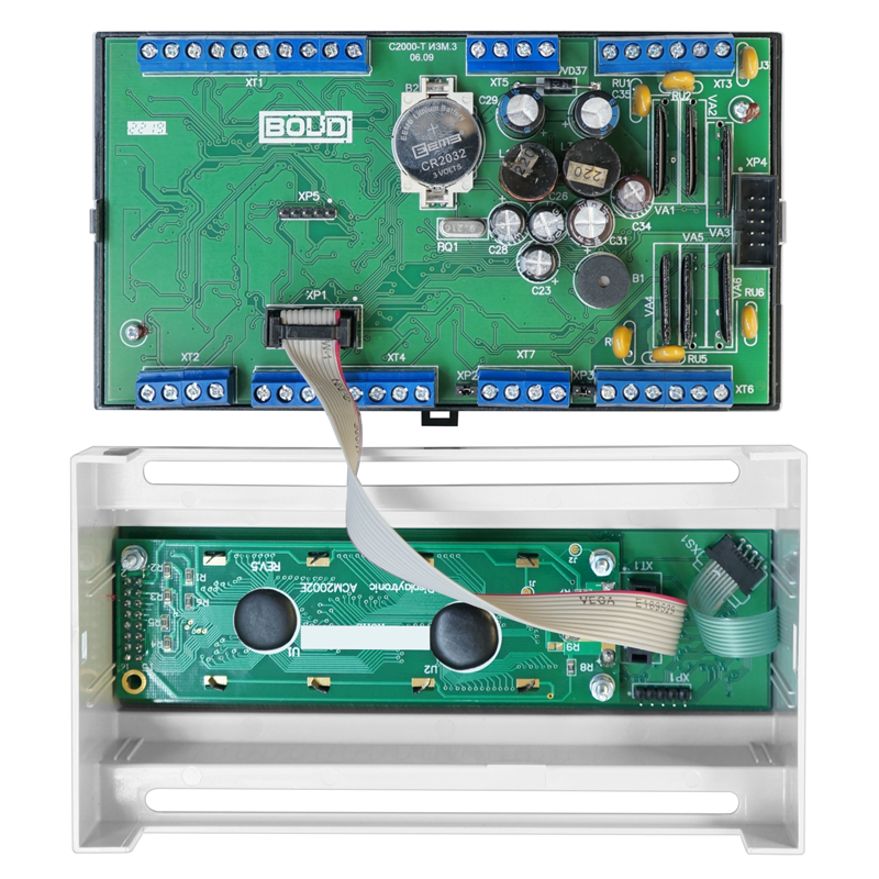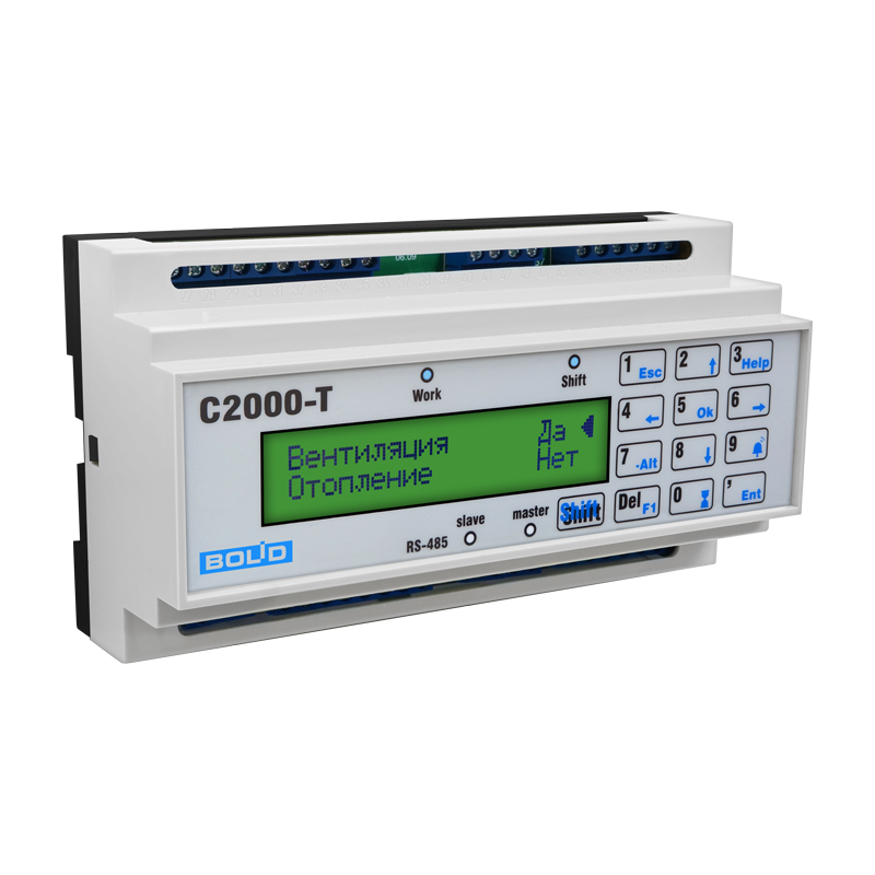 Контроллер технологический с ЖКИ и клавиатурой С2000-Т исп.01 предназначен для контроля и регулирования температуры воздуха в помещениях, оборудованных системой приточно-вытяжной вентиляцией с водяным калорифером и тепловым пунктом (отопление и/или ГВС).