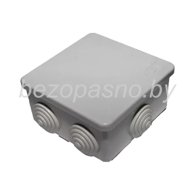 Коробка квадратной формы устанавливается снаружи поверхности стен, т.е. для открытой электропроводки. Выполнена из полипропилена, ПВХ с защитой IP54. Диаметр мембр. входа равен 20 мм.