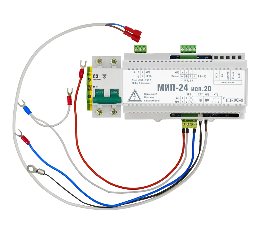 Модуль источника питания МИП-24 исп.20 (МИП-24-2/П5-Р-RS) предназначен для размещения в монтажных устройствах с установкой на DIN-рейку и обеспечения резервированным питанием средств пожарной автоматики, извещателей, приборов ОПС, СКУД и других устройств. Рекомендован для организации питания БК-24-RS485-01, для совместного использования с ППКУП "Сириус", пульта "С2000М" и их исполнений. Сертифицирован согласно ТР ЕАЭС 043/2017.