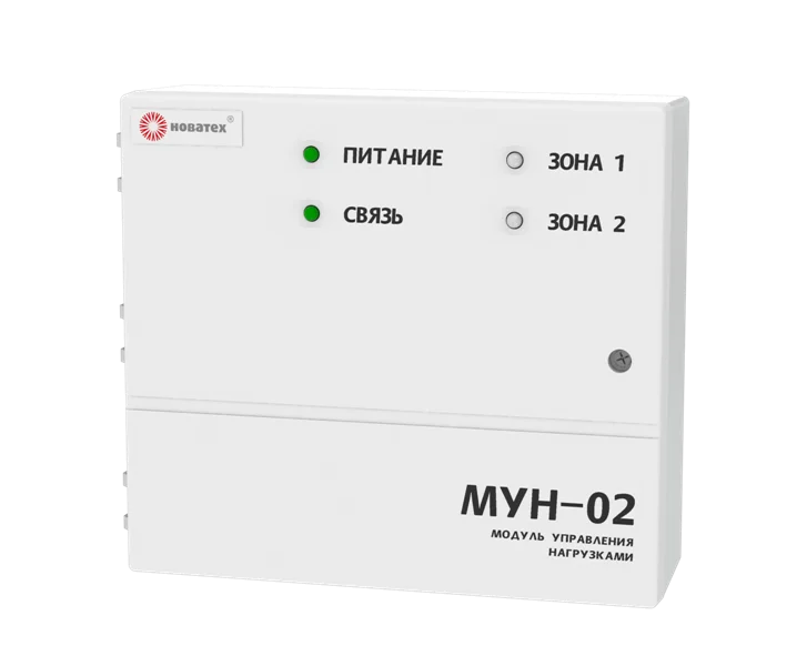 Модуль управления нагрузками МУН-02 предназначен для контроля и управления дымовыми клапанами или вентиляцией в системе ПДЗ, а также для контроля шлейфов сигнализации и выдачи сообщений о текущем состоянии и режимах работы на базовый блок ППКП-128 (ПКП-128).