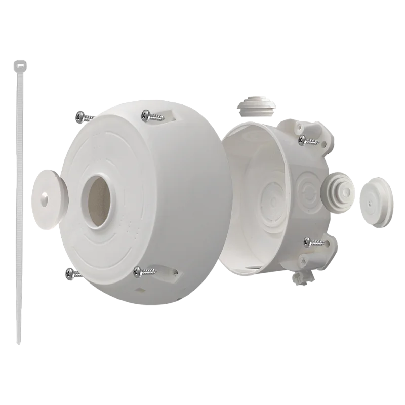 Универсальная монтажная коробка ST-K03 PRO белого цвета для видеокамер охранного наблюдения, предназначена для установки и подключения видеокамер охранного видеонаблюдения.