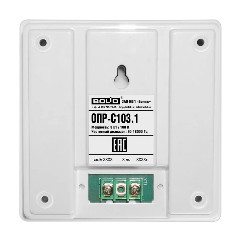 Оповещатель пожарный речевой настенный ОПР-С103.1 предназначен для передачи речевого оповещения или специальных сигналов в системах оповещения и управления эвакуацией (СОУЭ), а также передачи речевой информации в системах звуковой трансляции с высокоомным выходом (100 В).