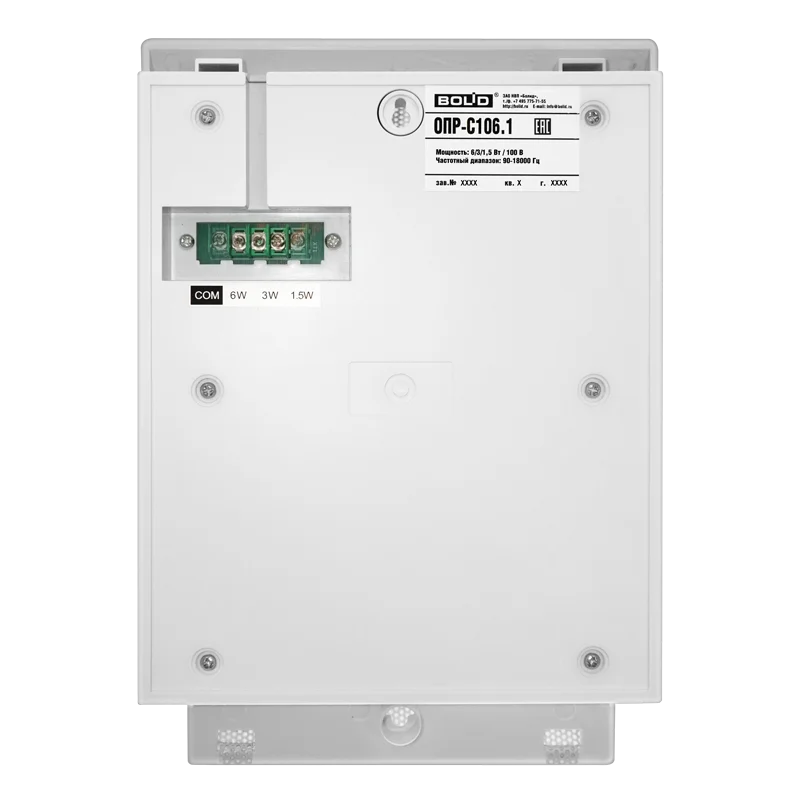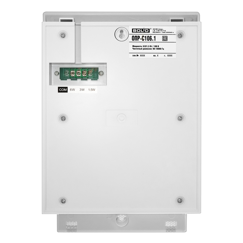 Оповещатель пожарный речевой ОПР-С106.1 предназначен для передачи речевого оповещения или специальных сигналов в системах оповещения и управления эвакуацией (СОУЭ), а также передачи речевой информации в системах звуковой трансляции с высокоомным выходом (100 В).