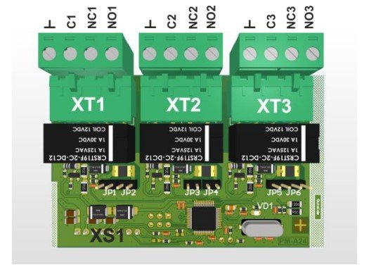 Релейный модуль предназначен для установки в корпус приборов приемно-контрольных серии "А24" и увеличения емкости приборов на 3 релейных выхода с возможностью контроля целостности цепи управления.