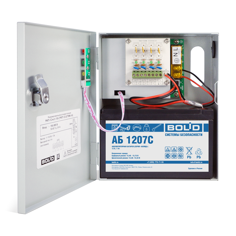 Резервированный источник питания РИП-12 исп.104 (РИП-12-3/7М6-V4) предназначен для питания видеокамер, систем контроля и управления доступом и других устройств с номинальным напряжением питания 12В.