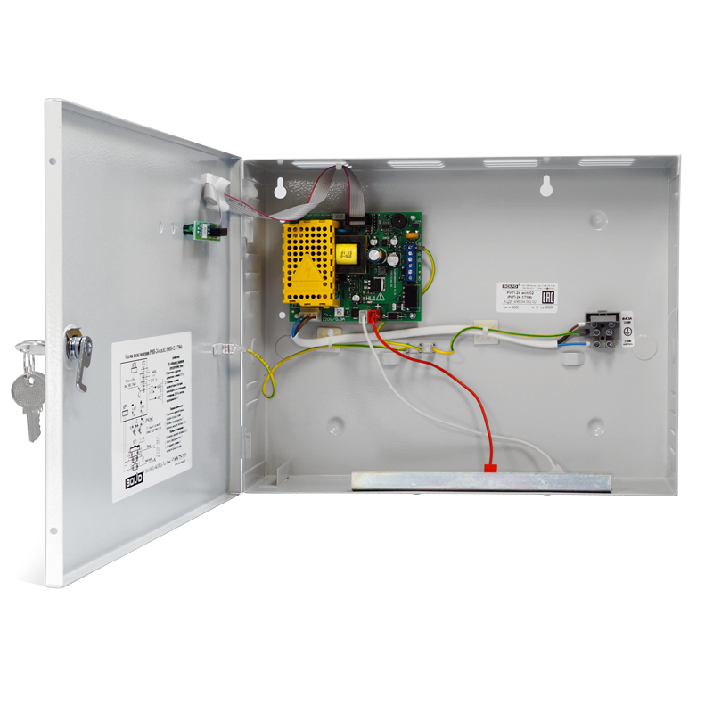 Резервированный источник питания РИП-24 исп.02 (РИП-24-1/7М4) с микропроцессорным управлением, 24 В, 1 А (10 мин-1,5 А, 2 мин-3 А), световая и звуковая индикация режимов, емкость 2х7 Ач (без аккумуляторов), защита от переразряда. Крышка под замок.