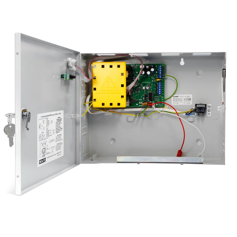 Резервированный источник питания РИП-24 исп.11 (РИП-24-3/7М4-Р) предназначен для питания технических средств пожарной автоматики и других слаботочных систем. Напряжение: 24В; 3А (мах 4А); емкость АБ 2*7 Ач и внешних 34Ач; звуковая сигнализация; датчик вскрытия корпуса; защита: от перенапряжения, от КЗ, от переполюсовки АБ.