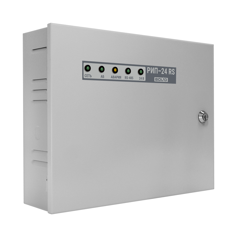 Напряжение: 24В; 2А (мах 2.5А); емкость АБ 2*7Ач; световая индикация; звуковая сигнализация; датчик вскрытия корпуса; защита: от перенапряжения, от КЗ, от переполюсовки АБ; интерфейс RS-485.