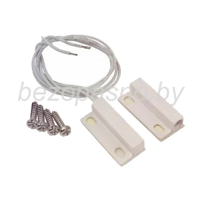 Магнитоконтактный извещатель RMS-45, накладной для металлических дверей, белый. Липкий слой для крепления без шурупов. Предназначен для блокировки дверных и оконных проемов, других строительных, конструктивных элементов зданий и сооружений на открывание или смещение.