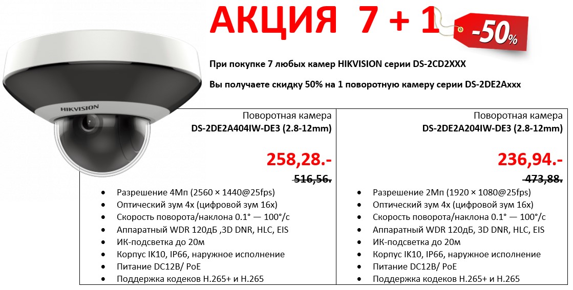 —Акция: HIKVISION поворотные камеры скидка -50%