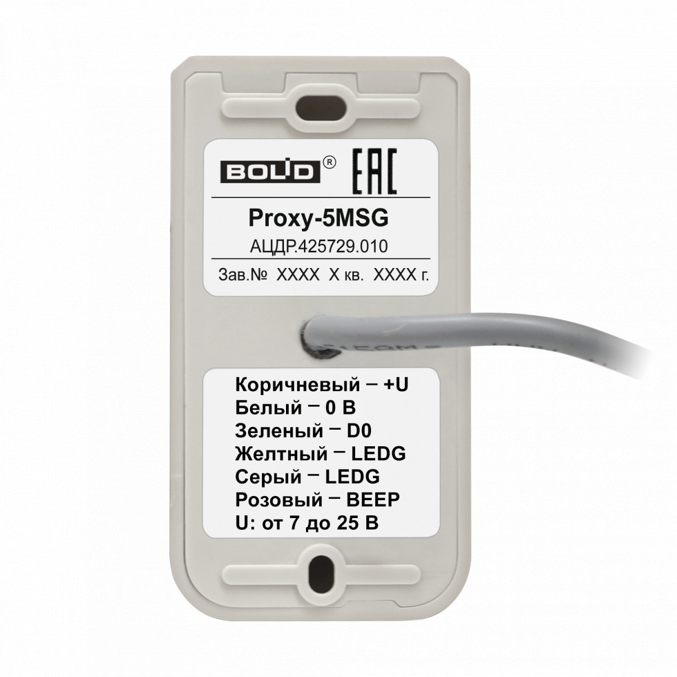Считыватели бесконтактные Proxy-5MSG предназначены для считывания кода идентификационных карточек и передачи его на приёмно-контрольные приборы или контроллеры СКУД, поддерживающие входной формат данных – Dallas Touch Memory. В ИСО "Орион" используются для обеспечения процедур управления шлейфами и разделами охранно-пожарной сигнализации и идентификации пользователей в точках доступа СКУД.