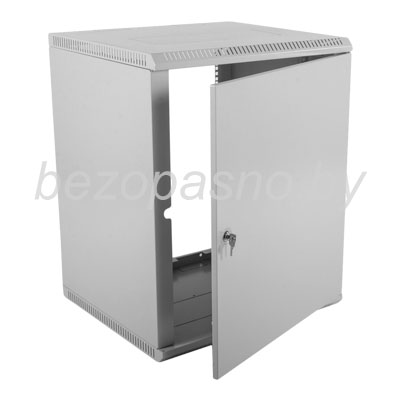 Настенный шкаф 19" ШРН-Э имеет полностью разборную конструкцию и состоит из пяти основных частей: крыша, дно, две передние направляющие, две боковые стенки c вертикальными направляющими, дверь. Настенный шкаф 19" ШРН-Э легок в сборке. За счет элементов крепления каркас шкафа имеет повышенную жесткость. Возможна комплектация металлической дверью и дверью с тонированным стеклом. Возможна установка двери как с правой, так и с левой стороны. Дверь фиксируется точечным замком. Предусмотрены два кабельных ввода в верхней и нижней частях шкафа, размер – 95х40мм. Перфорация обеспечивает хорошую вентиляцию.